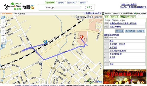 如果有興趣的話,蕃薯藤地圖網的網址是:http://maps.yam.com/ 。
